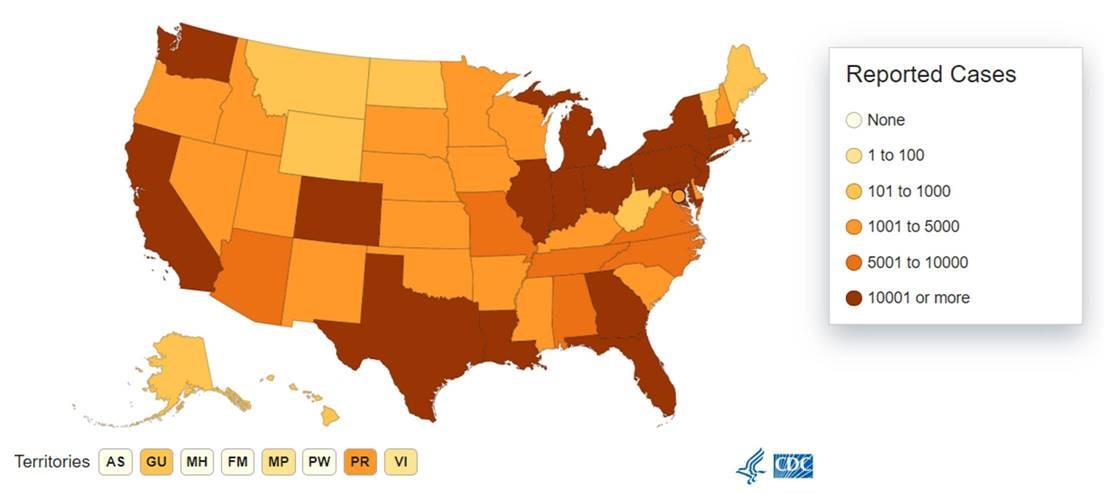- Out of the cases under investigation detected by U.S. surveillance, there are total cases: 802,583 and 44,575 deaths The CDC data closes out the day before reporting.