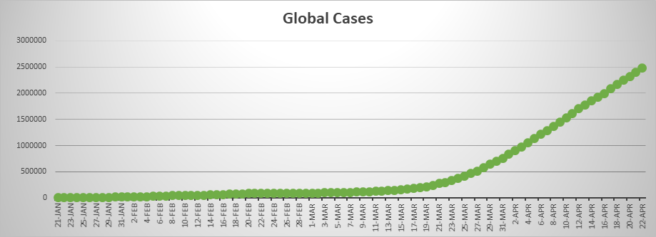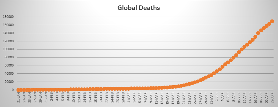 - Global Cases: 2,471,136 Total Deaths: 169,006